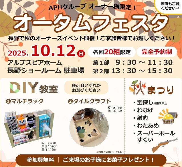 10/12(日)アルプスピアホーム長野ショールームにて、オータムフェスタin長野を開催いたしました。