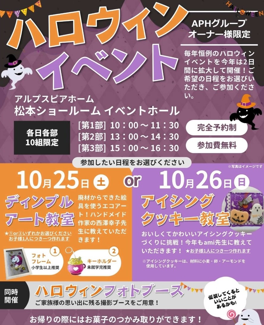 10/25(土)・26(日)アルプスピアホーム松本ショールームにて、ハロウィンイベントを開催いたしました。