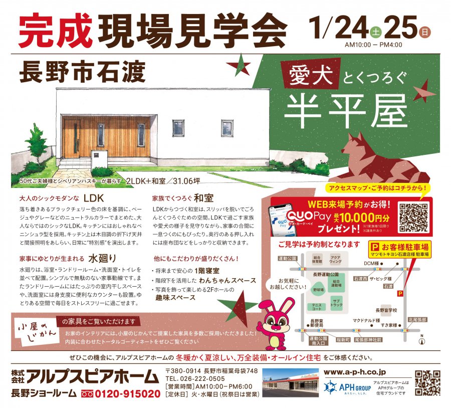 1/24(土)・25(日)長野市にて、完全予約制の完成現場見学会を開催いたしました。