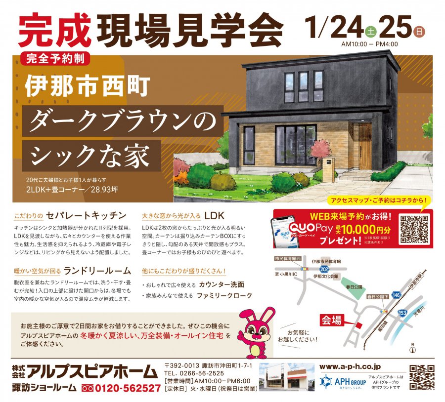 1/24(土)・25(日)伊那市にて、完全予約制の完成現場見学会を開催いたしました。