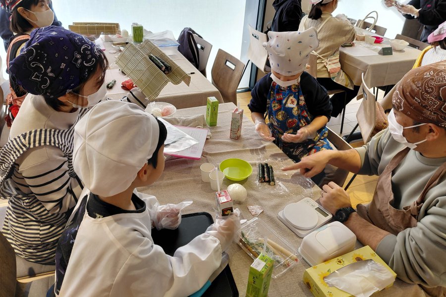 ご家族で協力し、可愛らしい巻き寿司をつくりあげていただきました!