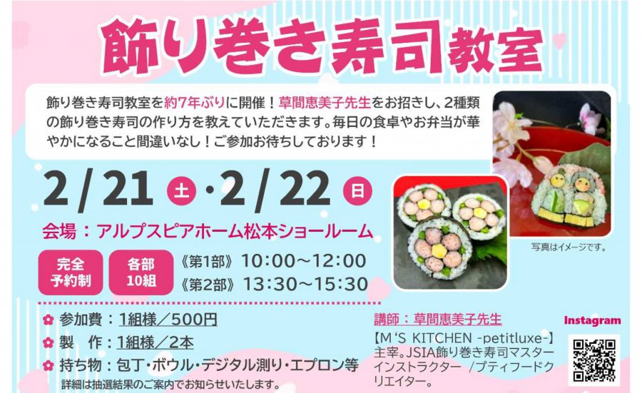 2/21(土)・22(日)アルプスピアホーム松本ショールームにて、飾り巻き寿司教室を開催しました!