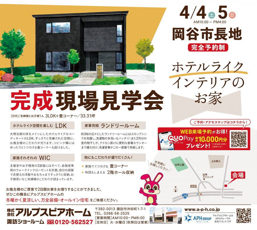 4/4(土)・5(日)岡谷市にて、完全予約制の完成現場見学会を開催いたしました。