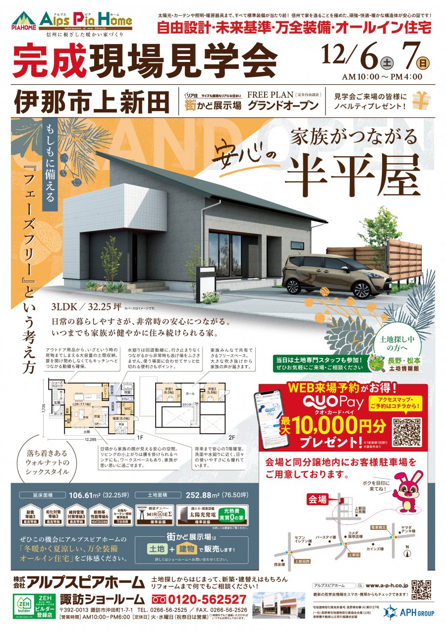 12/6(土)・7(日)伊那市にて街かど展示場『半平屋 Free Plan-完全自由設計-』の完成現場見学会を開催いたしました。