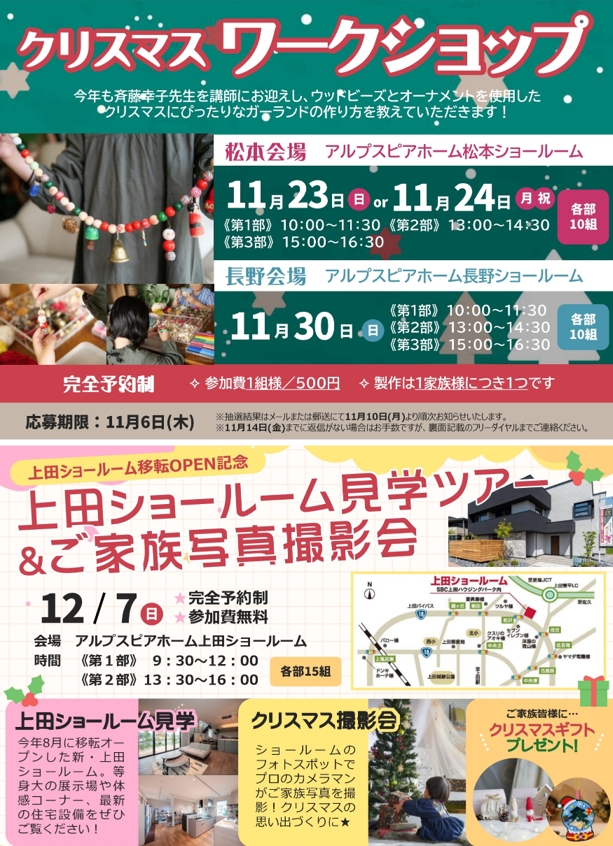 松本ショールームと長野ショールームでは、クリスマスワークショップを開催!