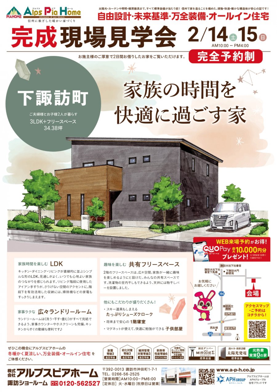 2/14(土)・15(日)下諏訪町にて、完全予約制の完成現場見学会を開催いたしました。