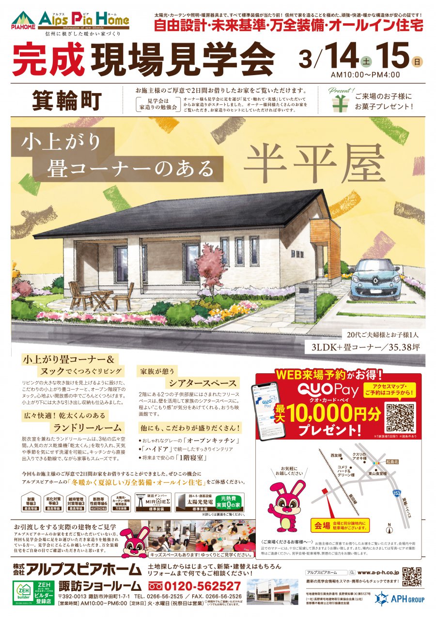 3/14(土)・3/15(日)箕輪町にて、完成現場見学会を開催いたしました。